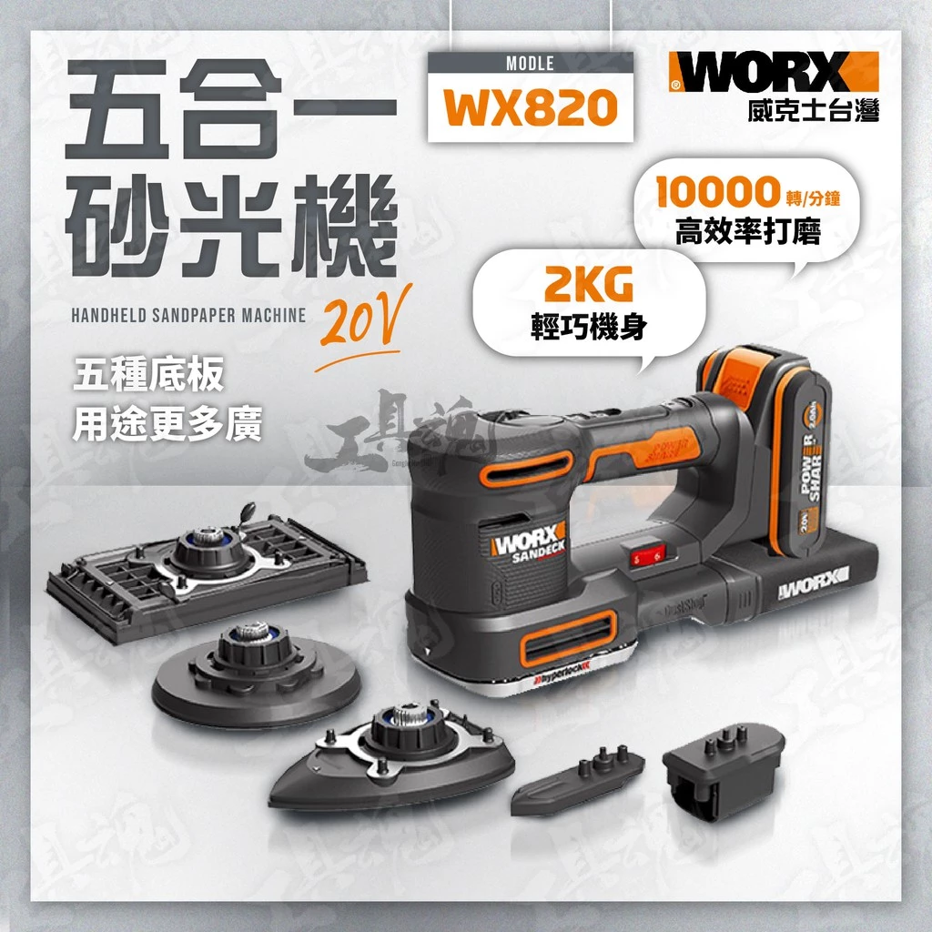 威克士- WX820 20V 五合一砂光機 砂紙機 研磨機 打孔機 拋光機 打磨機 牆面砂紙 木
