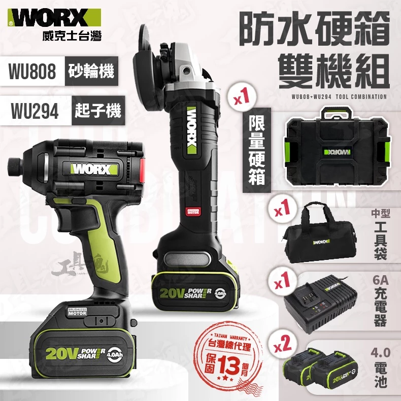 威克士- WU808 WU294 WA4215 防水硬箱雙機組 無刷砂輪機 無刷起子機 威克士 公司
