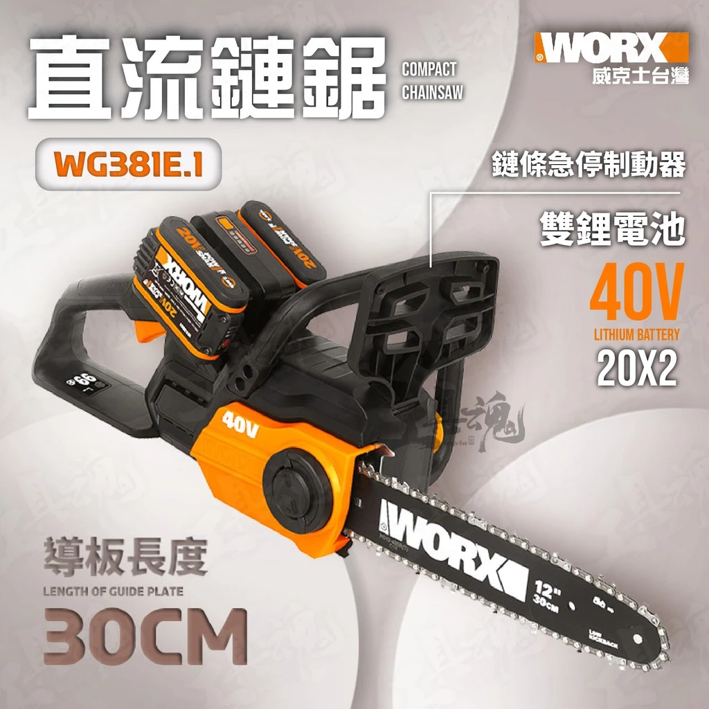 威克士- WG381E.1 30CM 鏈鋸 切割機 鍊鋸 20V 40V 鋰電池 公司貨 WOR