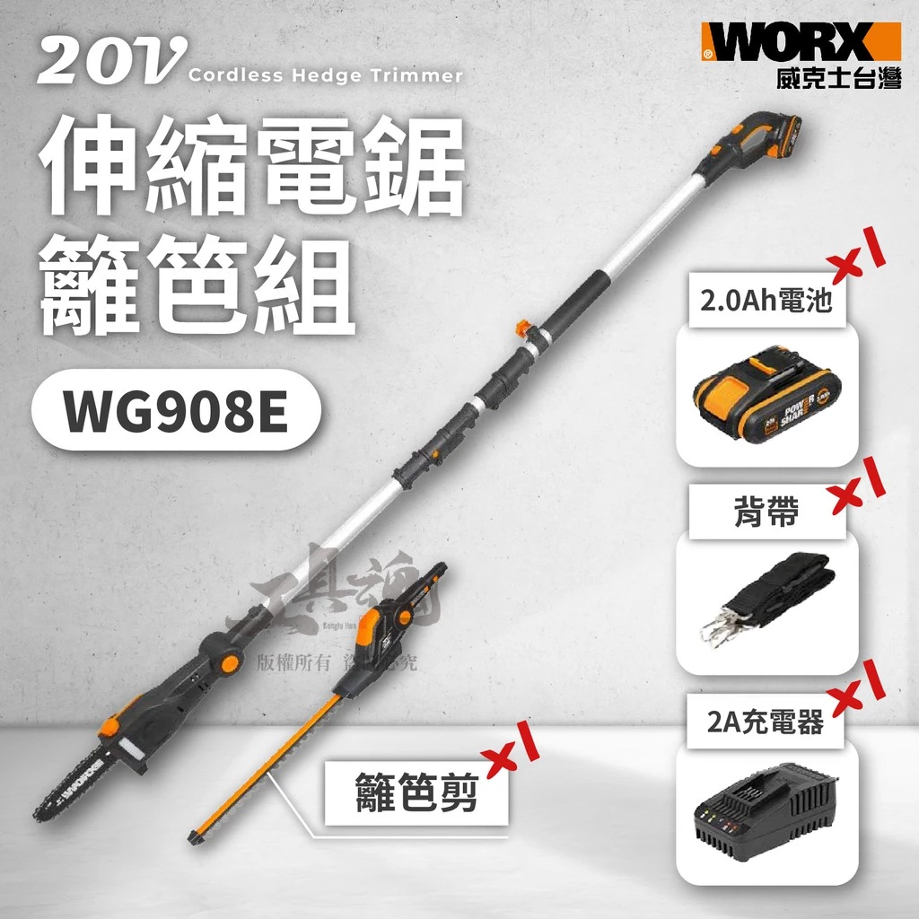 威克士- WG908E 2合1伸縮式籬笆剪 威克士 鋰電高枝鏈鋸機組 籬笆剪 修枝剪 鏈鋸 20V
