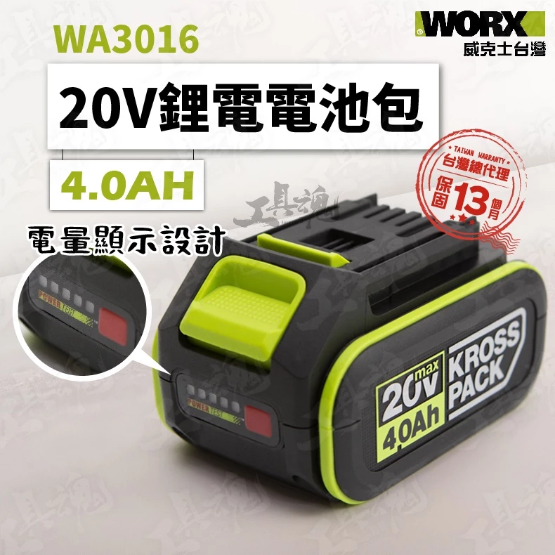 威克士- WA3016 4.0AH 電池包 20V 4.0電池 鋰電池 綠標 綠色 公司貨 WOR