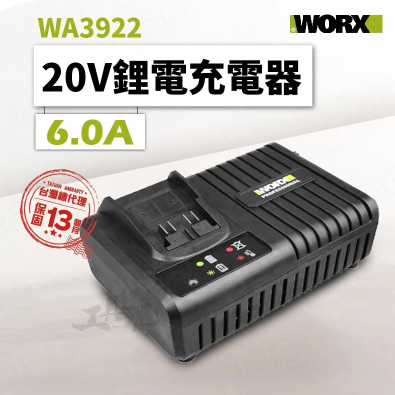 威克士- WA3922 6A 6.0A 充電器 14.4V 20V 鋰電池 綠標 綠色 公司貨 W