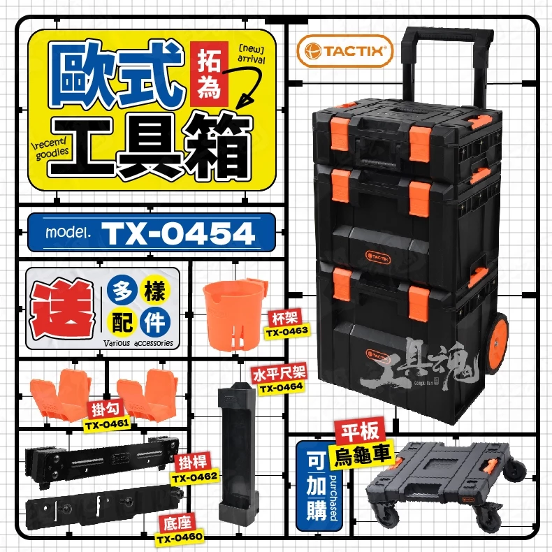 拓為/TACTIX- TX-0454 歐式工具箱 堆疊工具箱 工具車 拉車板車 手推車 工具推車 工