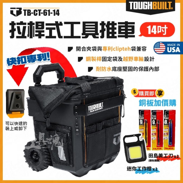 托比爾- 工具推車TB-CT-61-14 拉桿式 14吋 快扣 附收納橫桿 TB 托比爾 工具箱