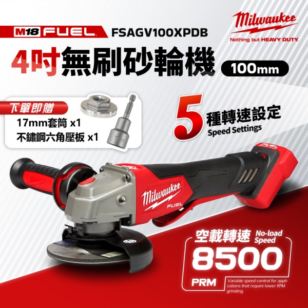 美沃奇- FSAGV100XPDB 4吋無刷砂輪機 公司貨 砂輪機 無刷電機 米沃奇 Milwauk