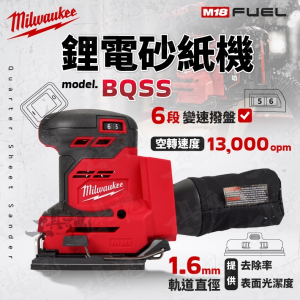 美沃奇- 新款 BQSS 鋰電砂紙機 6段調速 18V 附集塵袋 M18 BQSS 米沃奇 Milw