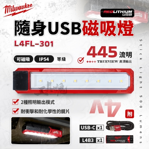 美沃奇- 隨身磁吸棒燈 L4 FL-301 USB 可磁吸 防水 照明燈 隨身 工作燈 米沃奇 L4