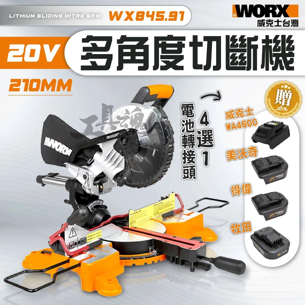 威克士- WX845.91 多角度切斷機 切割機 威克士 多角度切割機 牧田 得偉 美沃奇 電池轉接