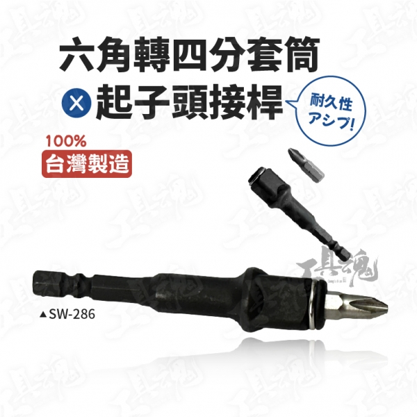 六角轉四分套筒 起子頭 六角轉四分 套筒 接桿 SW-286 兩用接桿 起子機 板手 兩用 台灣製