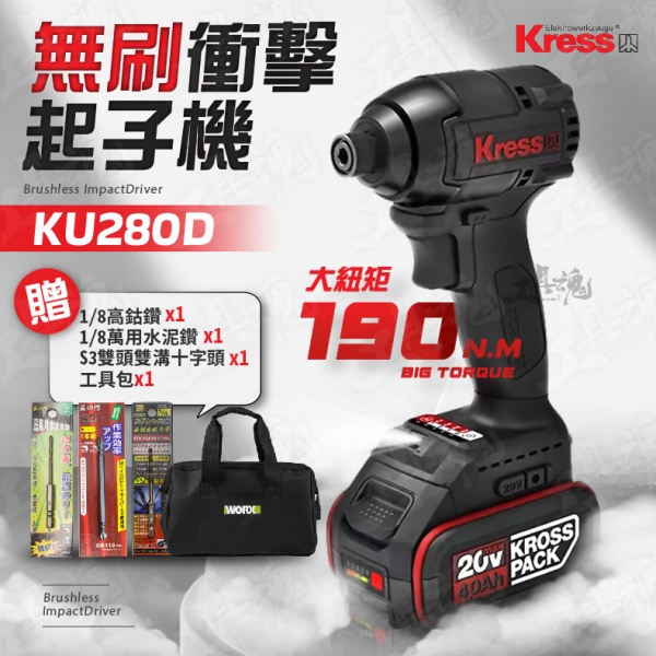 卡勝- KU280D 無刷衝擊起子機 20V 卡勝 190牛頓米 無刷電機 起子機 ku280 KR