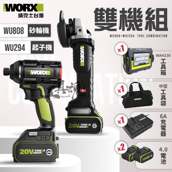 威克士- WU808 WU294 WA4230 雙機組 無刷砂輪機 無刷起子機 威克士 公司貨 工具