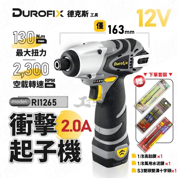 車王- 【2.0A電池】RI1265 車王 德克斯 12V 衝擊起子 起子機 鋰電池 Durofix