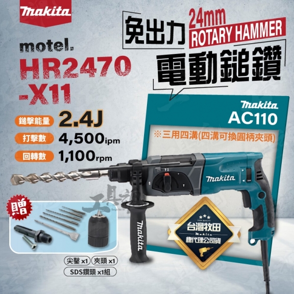 牧田/Makita- 免出力電動鎚鑽 HR2470X11 24mm 電動鎚鑽 三用四溝電鑽 鎚鑽 H