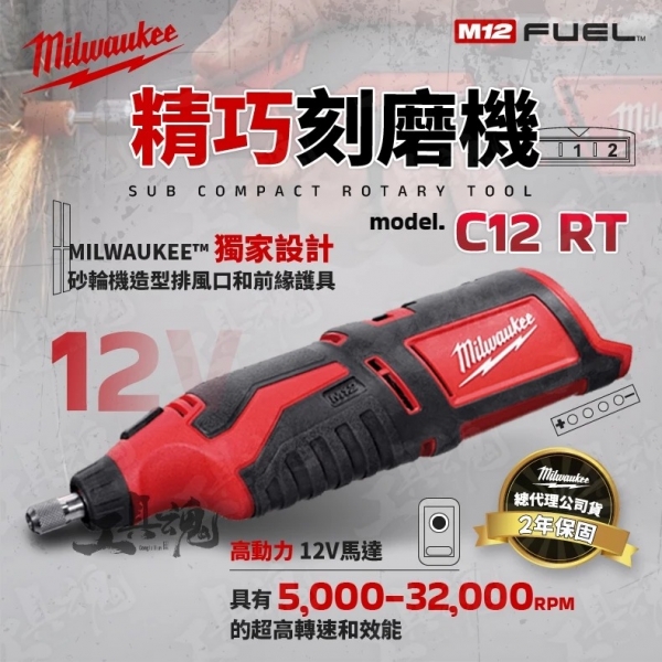 美沃奇-C12 RT 刻磨機 12V 精巧刻磨筆 雕刻機 3mm夾頭 米沃奇 c12rt 公司貨