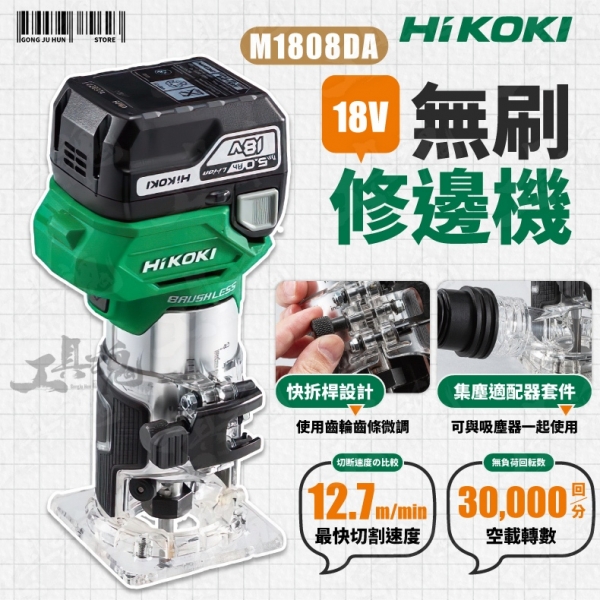 HIKOKI- M1808DA 18V 無刷 修邊機 雕刻機 快拆式 可集塵 路達機 木工