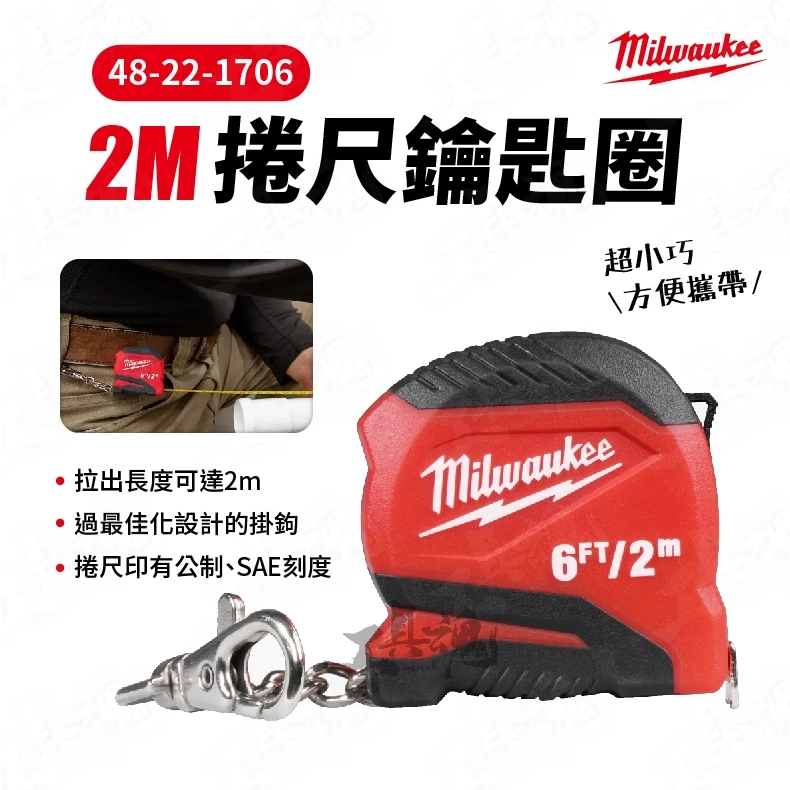 美沃奇- 48-22-1706F 捲尺鑰匙圈 2M/6FT 公分/英吋 捲尺 鑰匙圈 米沃奇 吊飾