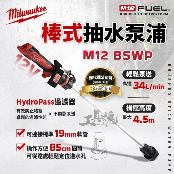 美沃奇- M12 BSWP 棒式抽水泵浦 12V 抽水 汙水 排水 淹水 抽水馬達 M12BSWP