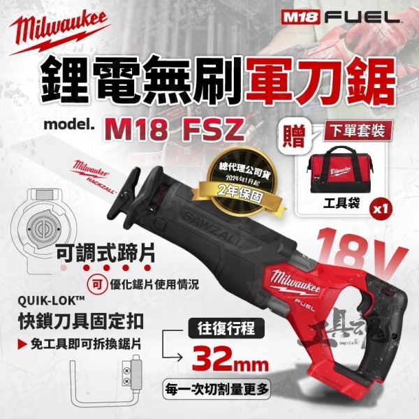 美沃奇-全新二代改款 M18 FSZ 無碳刷軍刀鋸 超級軍刀鋸 FSZ 米沃奇 Milwaukee