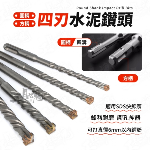 圓柄 方柄 四刃水泥鑽頭 十字頭 四溝 圓柄 方柄 四刃刀頭 可打鋼筋 6mm~16mm 多種尺寸