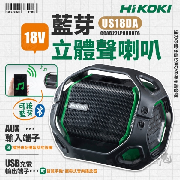 HIKOKI- 18V US18DA 藍芽手提音響 IP54 防水防塵 球型喇叭 手提音響 音響