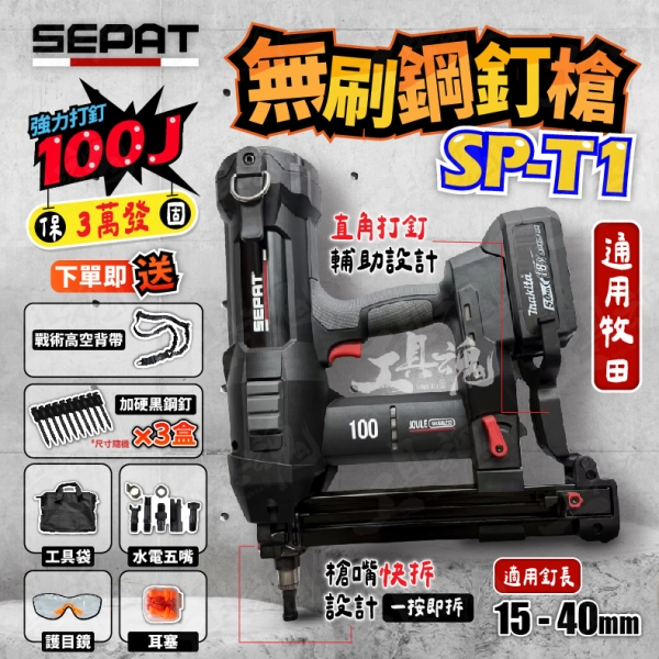 SEPAT-無刷鋼釘槍 20V 100焦耳 鋼釘槍 適用牧田電池 槍嘴快換系統 釘槍 聖帕 SP-T