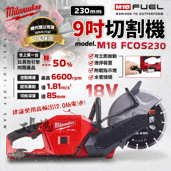 美沃奇- M18 FCOS230 9吋 切割機 18V 無刷 鋰電 切割機 切割鋸 9
