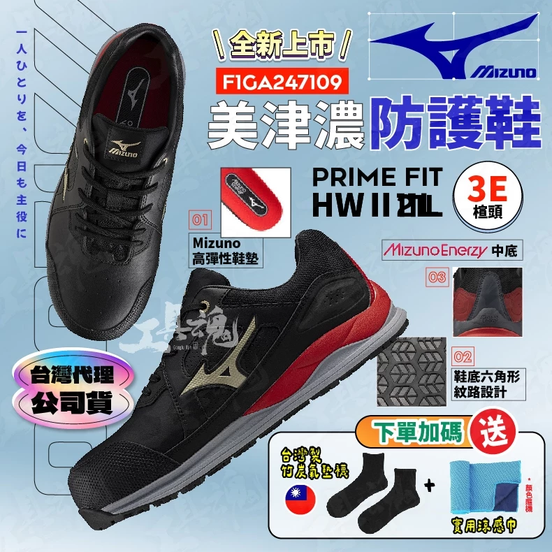 美津濃- MIZUNO 防護鞋 F1GA247109 PRIME FIT HWⅡ11L 寬楦 安全