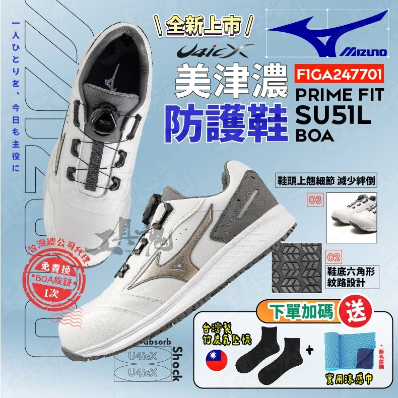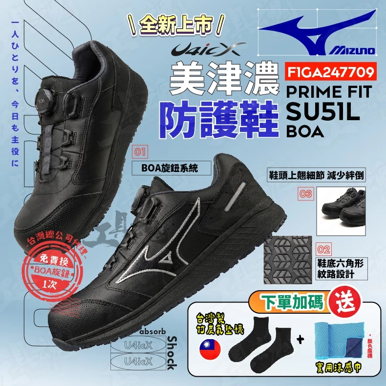 美津濃- MIZUNO 防護鞋 F1GA247709 PRIME FIT SU51L BOA 工作鞋