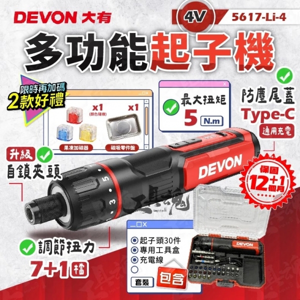 大有-4V 電動螺絲起子 5617-Li-4 電動起子機 充電起子 5617 鎖螺絲 DEVON