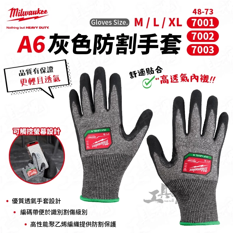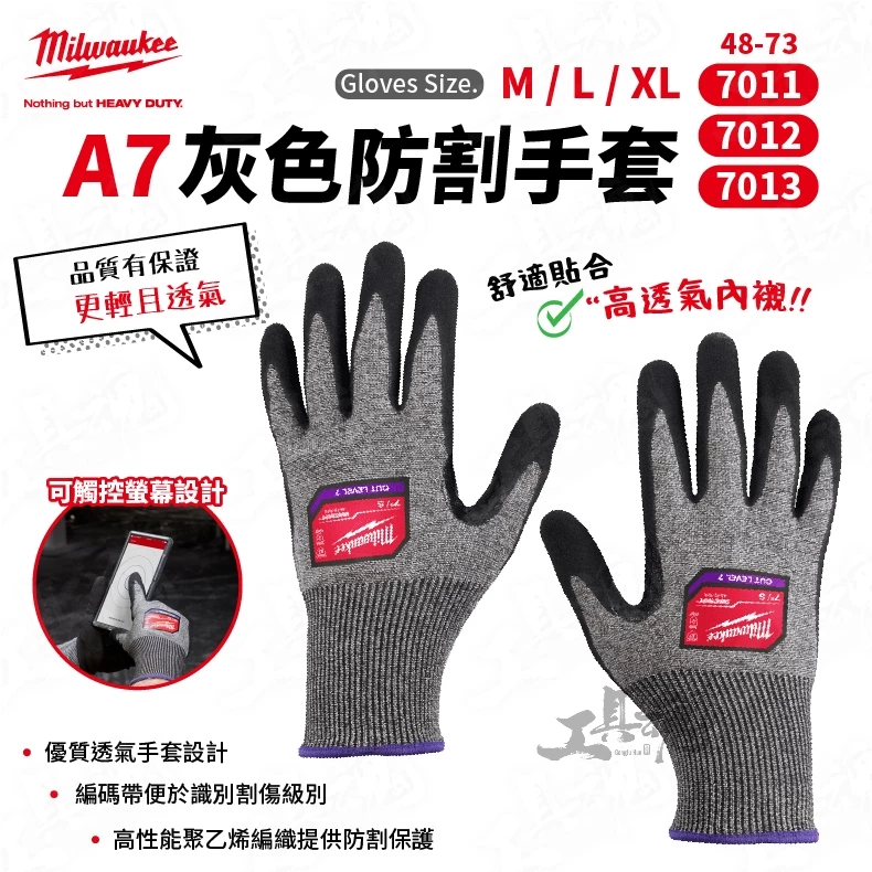 美沃奇- A7灰色防割手套 48-73-7011 48-73-7012 48-73-7013 防撞