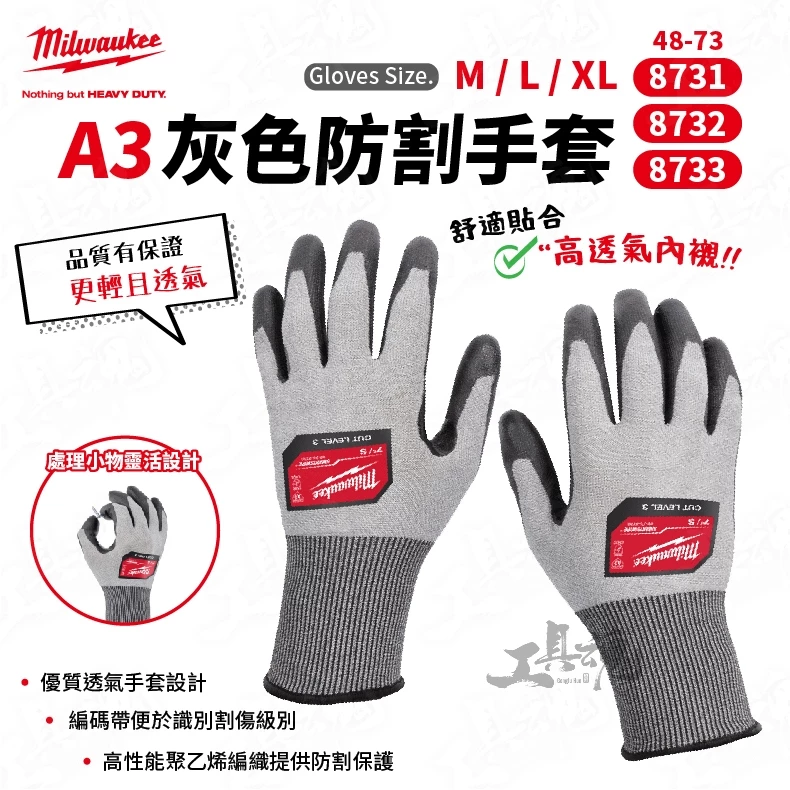 美沃奇- A3灰色防割手套 48-73-8731 48-73-8732 48-73-8733 防撞