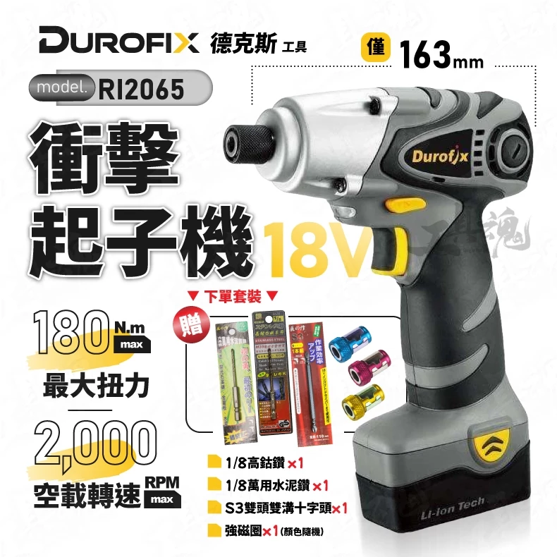 車王- 全新 RI2065 德克斯 鋰電 衝擊起子 18V 20V 高估鑽 水泥鑽 S3十字頭 起子