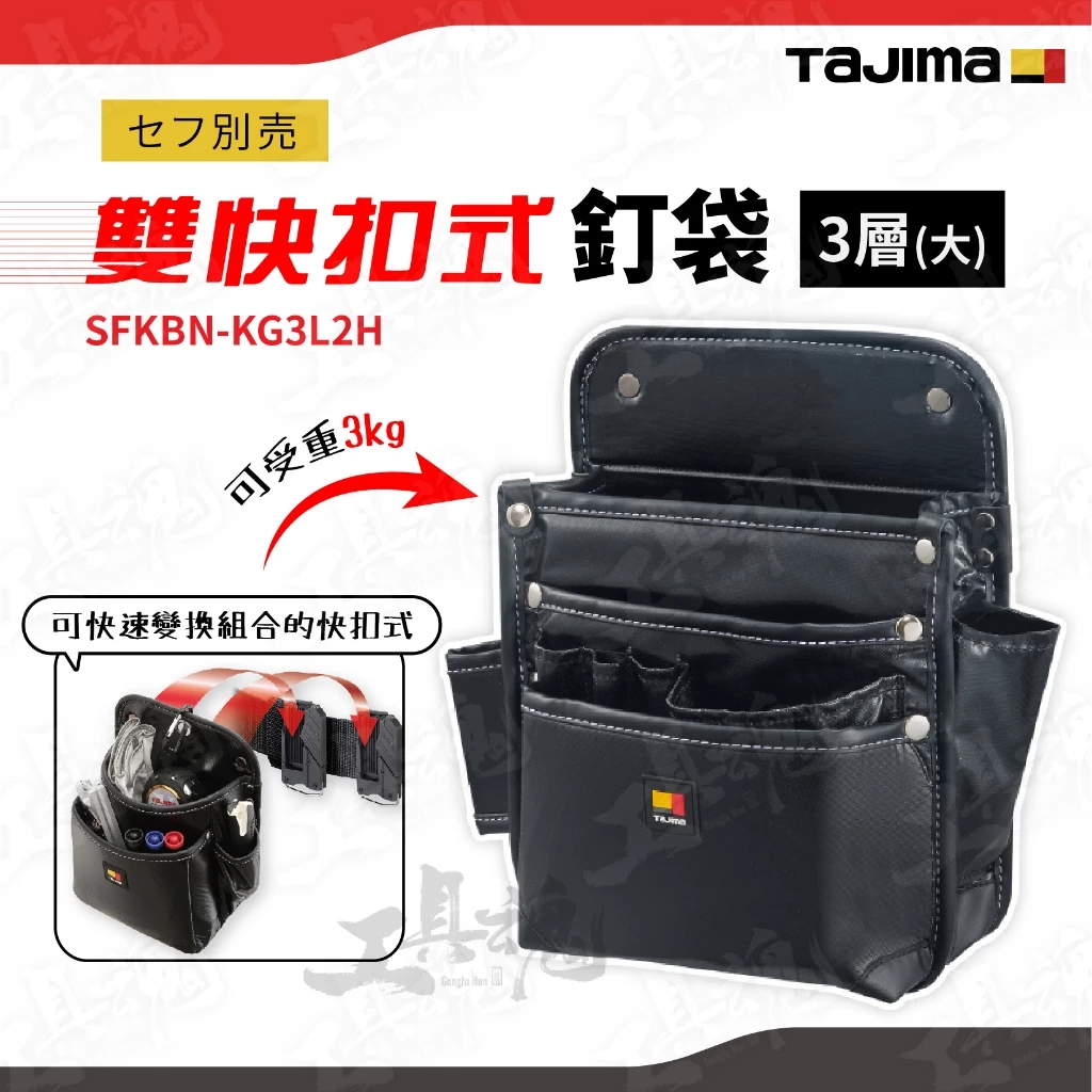 田島- SFKBN-KG3L2H 雙快扣式 釘袋3層(大) 小物袋 腰包 筆袋 超耐磨 特殊表布 著