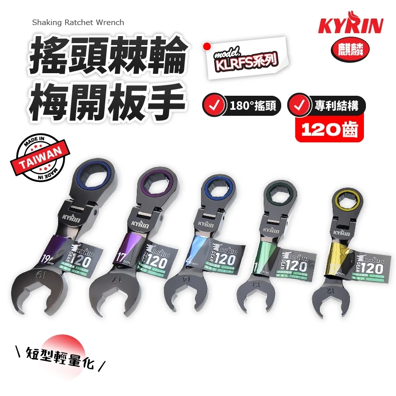 麒麟- 搖頭棘輪梅開扳手 台灣製 KLRFS系列 KYRIN 輕量化 開口端快插 防滑牙 梅開板手