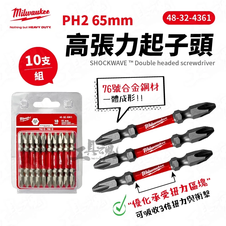 美沃奇-【10支/卡】48-32-4361 電動起子頭 雙頭 高張力 起子頭 PH2 65mm 耐久