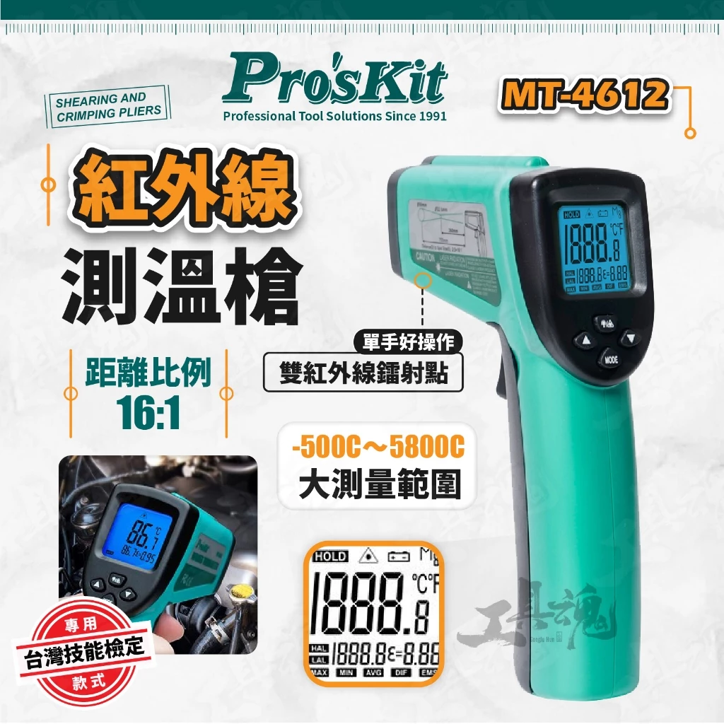 寶工- MT-4612 紅外線溫度槍 -50~580度 Pro′sKit LCD數顯型背光 紅外線
