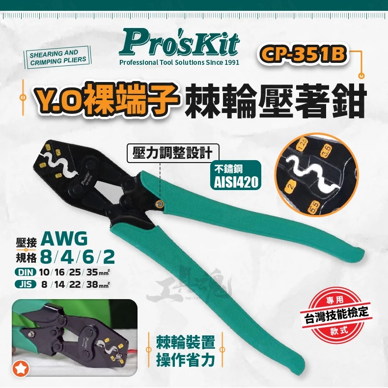 寶工- CP-351B Y.O裸端子棘輪壓著鉗 ProsKit 台灣技能檢定專用款式 壓線鉗 工具鉗