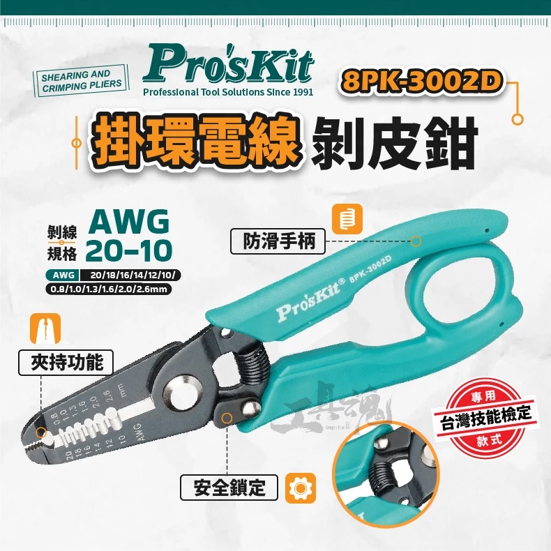 寶工- 8PK-3002D 掛環電線剝皮鉗 Pro'sKit 台灣技能檢定專用款 快速 鉗子 電纜剪