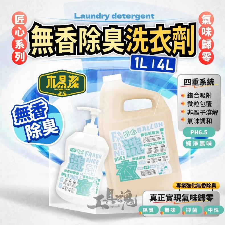 木易潔- 新品 除臭洗衣劑 無香 1L 4L 低敏 無香精 除臭 中性配方 除臭洗衣劑 洗衣液 洗衣